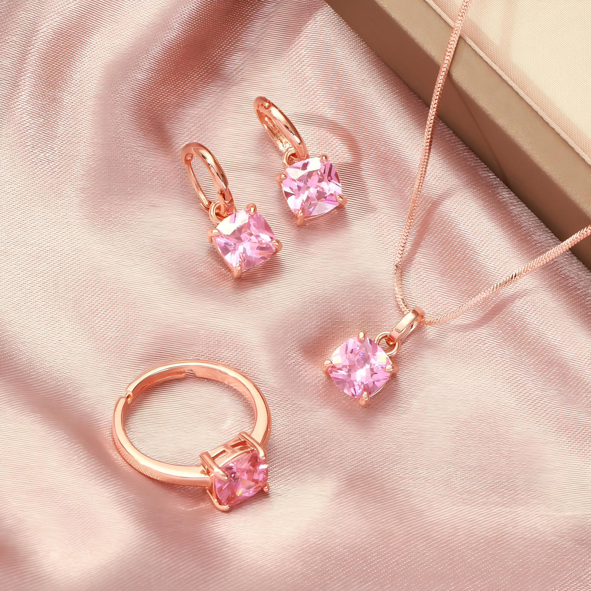 The Cupid's Gem Jewellery Set is a stunning collection that embodies love and elegance. Featuring a matching necklace, earrings, and Ring, each piece is adorned with sparkling gems. Perfect for Valentine’s Day, anniversaries, or any romantic occasion, this set adds a touch of glamour and romance to your look, making it a thoughtful and meaningful gift for someone special.
